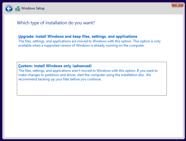 Hot tip: you can use the tab, enter and arrow keys to navigate the entire installation process.