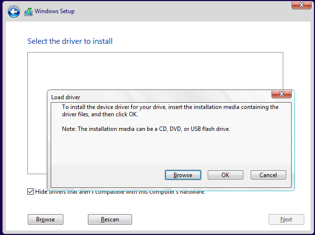 Now we need to repeat this process again selecting Load driver, browse and scrolling down to CD Drive (E:) virtio-win-0.1.1.