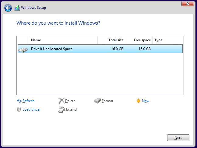 We should now see our drive. Go ahead and highlight it then click next one last time.