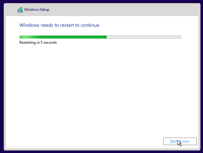 Once we see the Windows needs to restart to continue screen we can close vncviewer, go back to our terminal, and hit CTRL+C to stop virtualization.