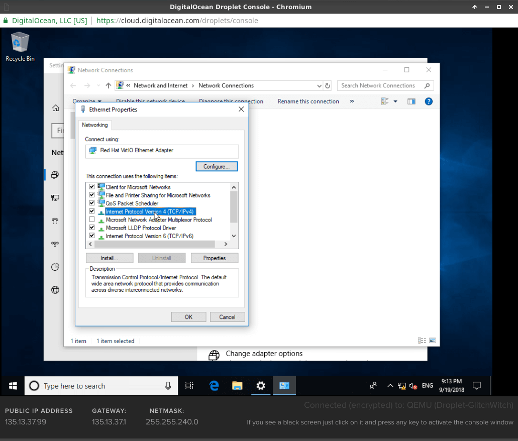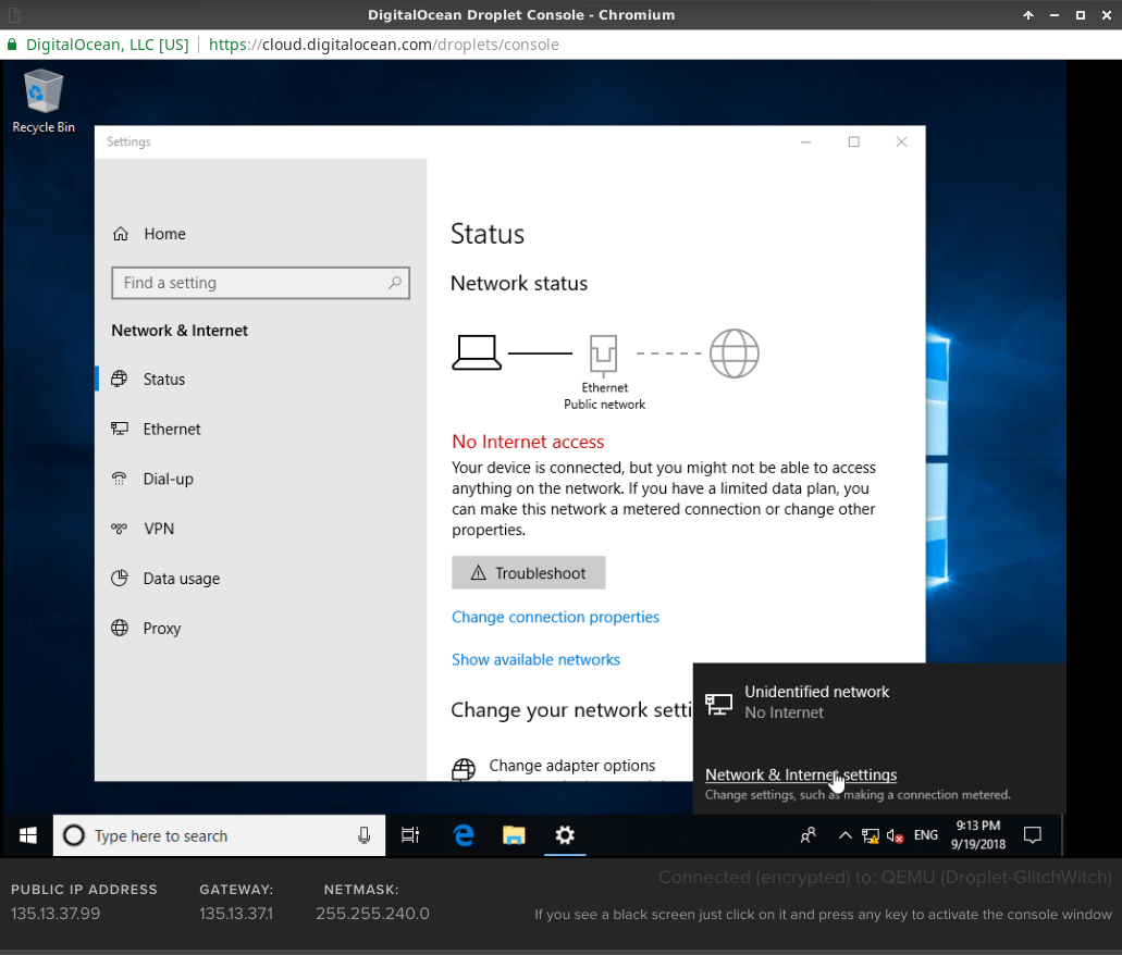In this guide we will learn how to install Windows 10 1803 on Digital Ocean using the official Windows ISO. This process will take between 1-2 hours and requires some level of linux and virtualization knowledge.