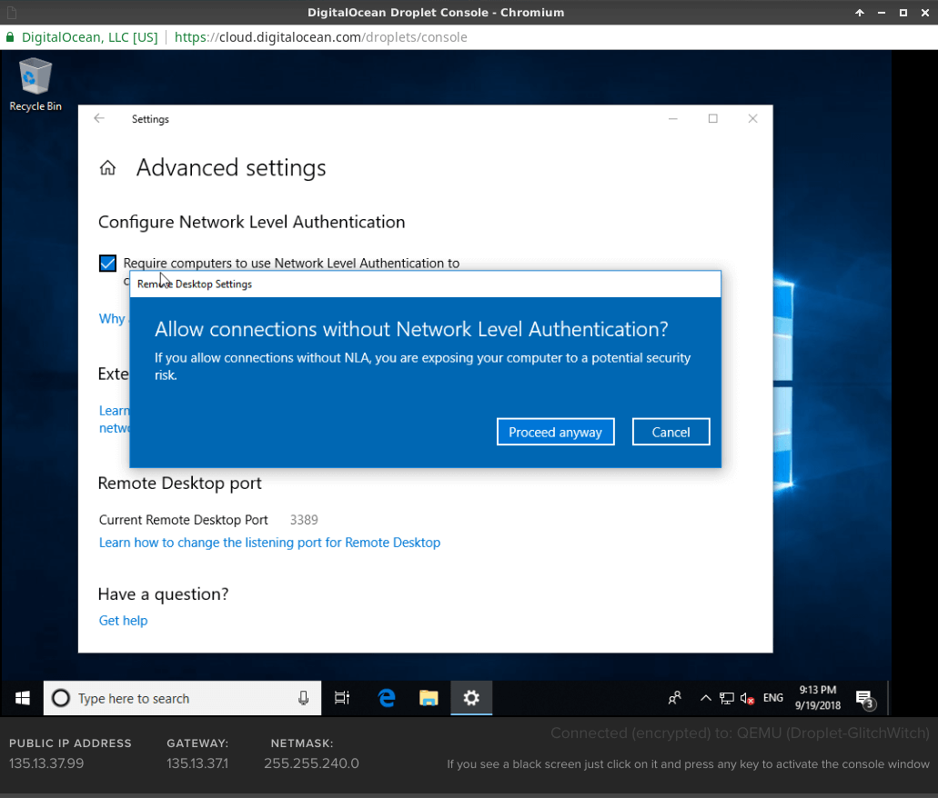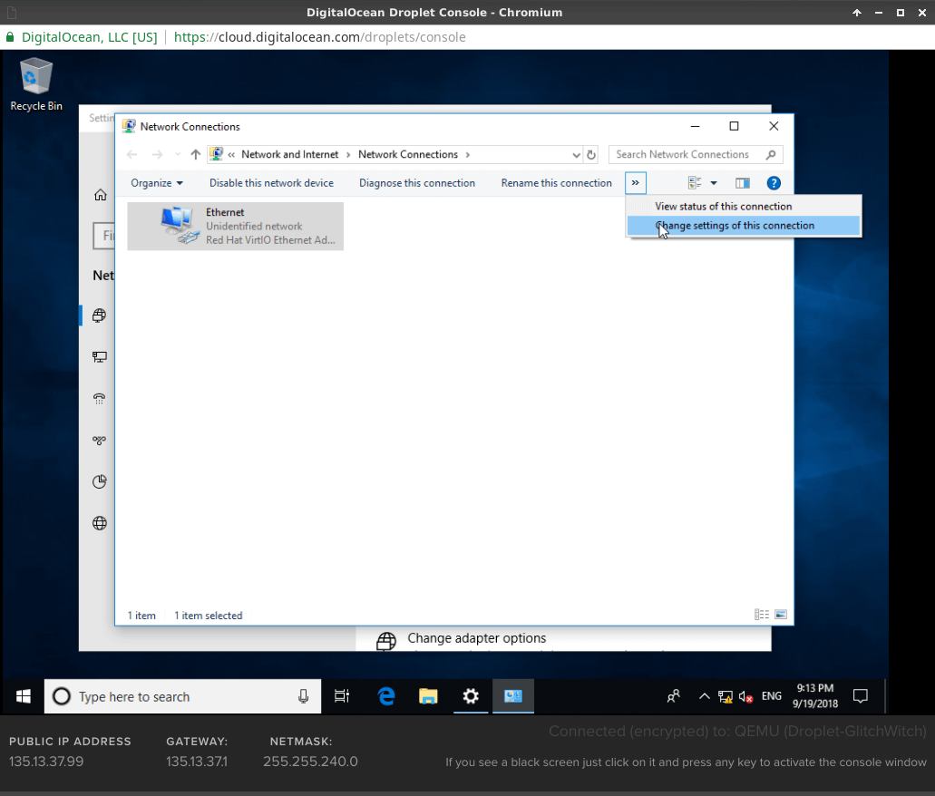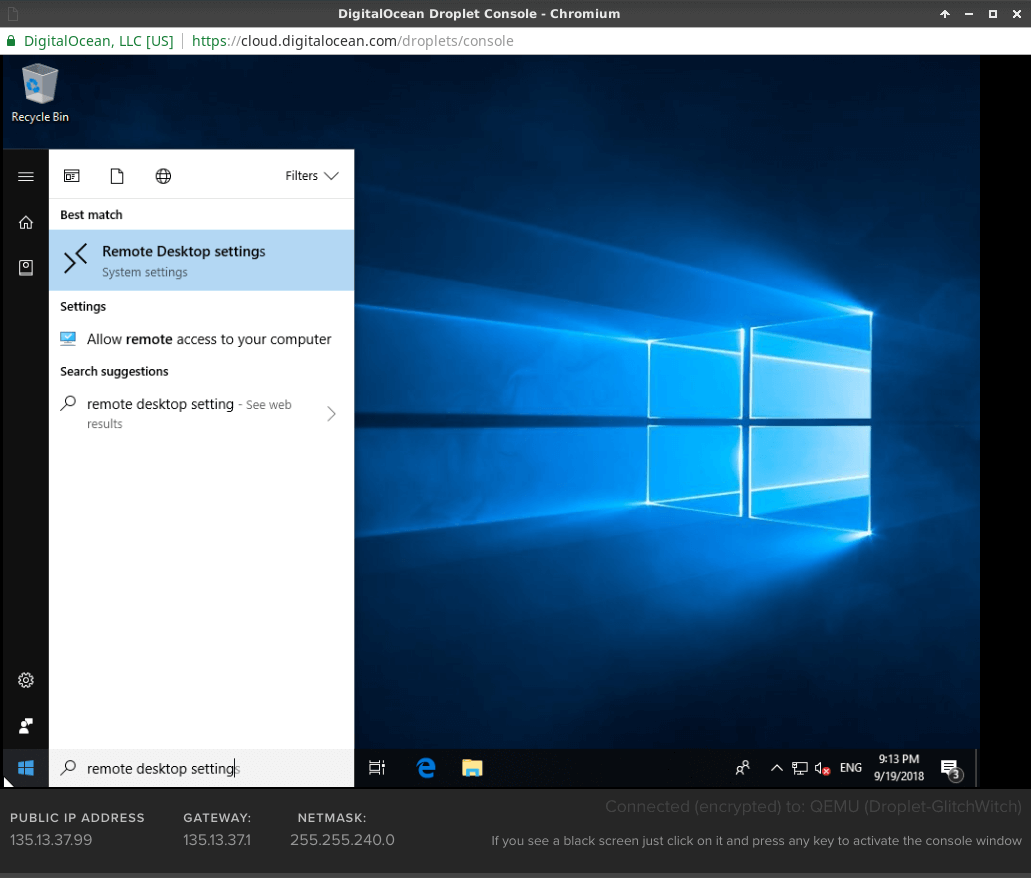 Now we need to jump back to the DigitalOcean dashboard and open the windows droplet we created earlier.